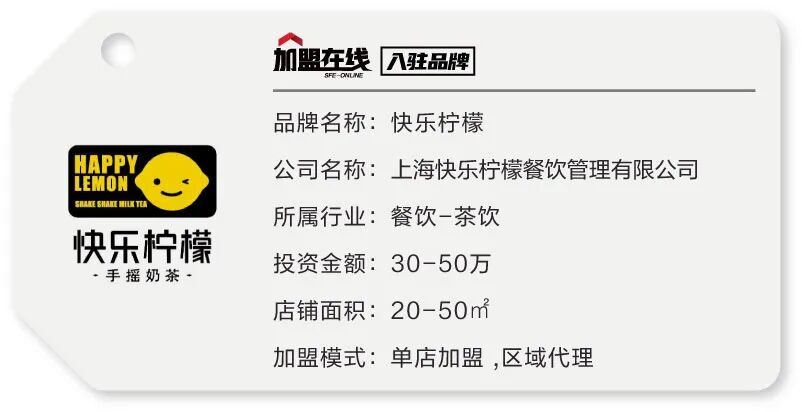 快乐柠檬创立于2006年,选择健康的碱性水果——柠檬为LOGO主角原型,而逗趣又可爱的眨眼睛设计,更是设计师的一个玩笑“柠檬好酸”,却意外地与快乐柠檬鲜明、有活力的品牌形象不谋而合。快乐柠檬以新鲜、创新的外带茶饮为主,主打【健康柠檬】系列、【岩盐芝士】系列等脍炙人口的饮品,锁定年轻族群。快乐柠檬立志要用奶茶治愈世界,2018年,我们首次将【手摇奶茶】概念融入品牌内,从品牌形象、品牌IP、产品品类及口味、店面设计全面升级!为奶茶控们加点“料”,品牌升级后快乐柠檬将奶茶文化更加突显,这杯奶茶不仅治愈感十足,而且还十分有范!以【茶】为本是我们的宗旨,快乐柠檬旨在发扬“新茶饮文化”,茶是华人的文化,快乐柠檬让茶成为世界文化。