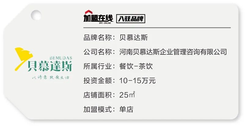 河南贝慕达斯企业管理咨询有限公司是一家集投资、连锁运营、品牌管理为一体的多元化连锁机构。全面负责旗下所有连锁品牌的授权、品牌战略策划、运营管理、支持与服务工作,作为一家专业连锁机构,公司旗下品牌贝慕达斯拥有强大的产品研发团队,定期深入市场调研,不断创新与改进产品,始终确保产品品质引领市场潮流,积累了丰富的连锁经营与品牌运作经验。三分清茶,七分鲜果,十分健康,贝慕达斯一直秉承着营养健康零添加,采用纯鲜果的佐餐理念,并逐渐成为消费者最受欢迎的水果茶连锁品牌。