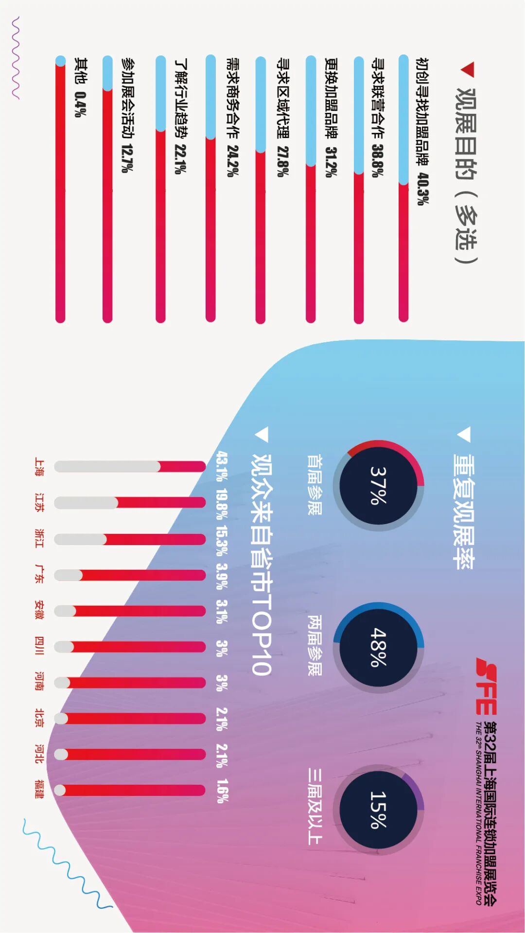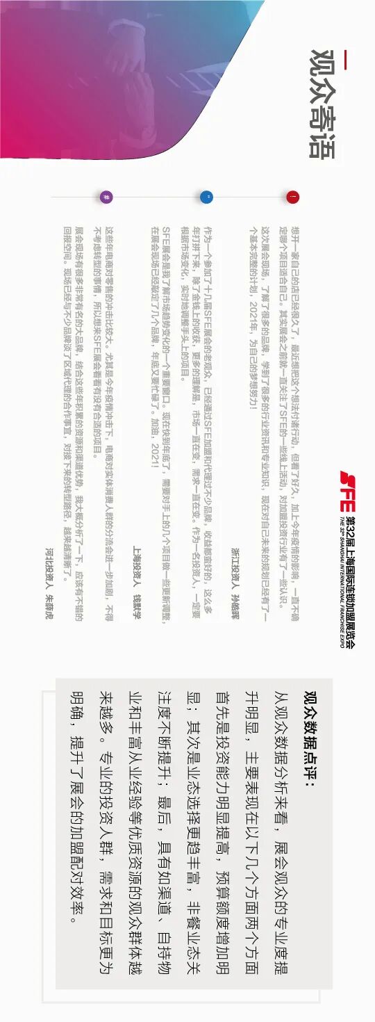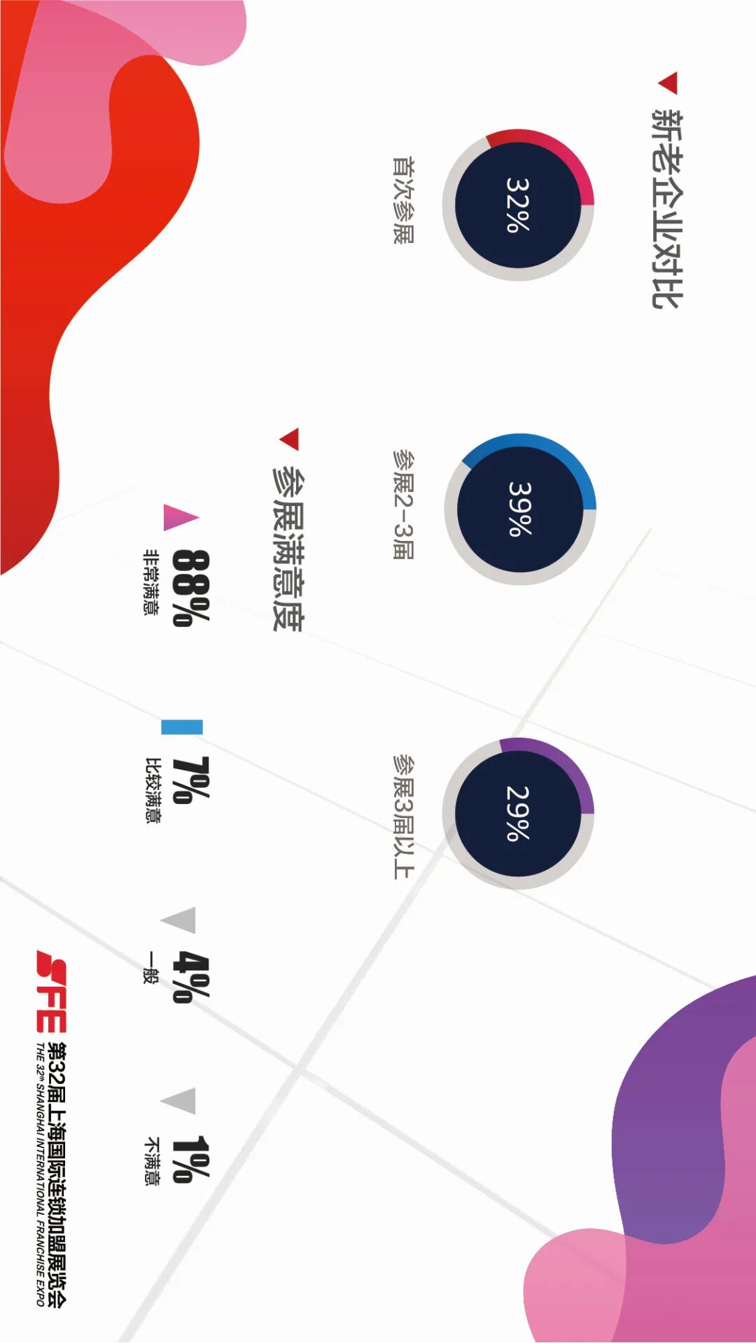 尽管展会效果远超参展商和观众预期,我们仍旧认为,本届展会更大的意义,是为行业和市场展示了信心,体现了未来的美好预期。接下来下面为大家奉上 SFE 第32届上海国际连锁加盟展览会 展后报告。