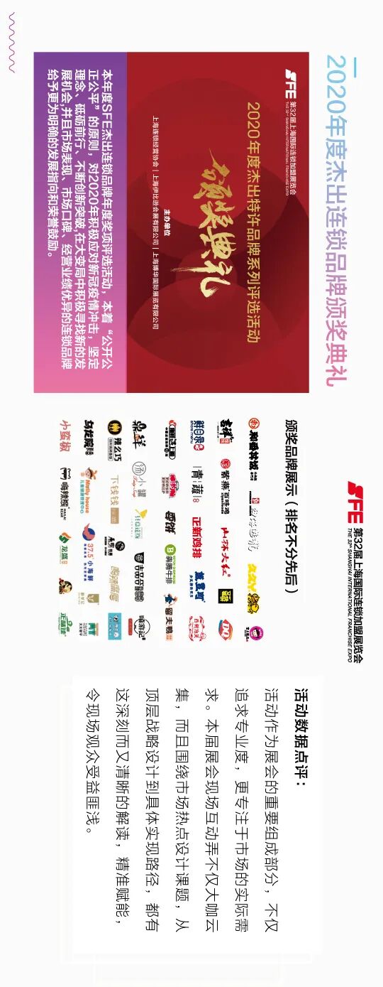 11月12日,SFE第32届上海国际连锁加盟展顺利落下帷幕,在深受疫情困顿的2020年,我们用一份完美的答卷,在持续为业内呈现加盟投资顶级盛宴的同时,更是在广大参展商和专业观众的热情参与下,为市场呈现出了普遍的乐观情绪和对前景的强烈信心,体现出后疫情新常态下加盟投资市场的勃勃生机。