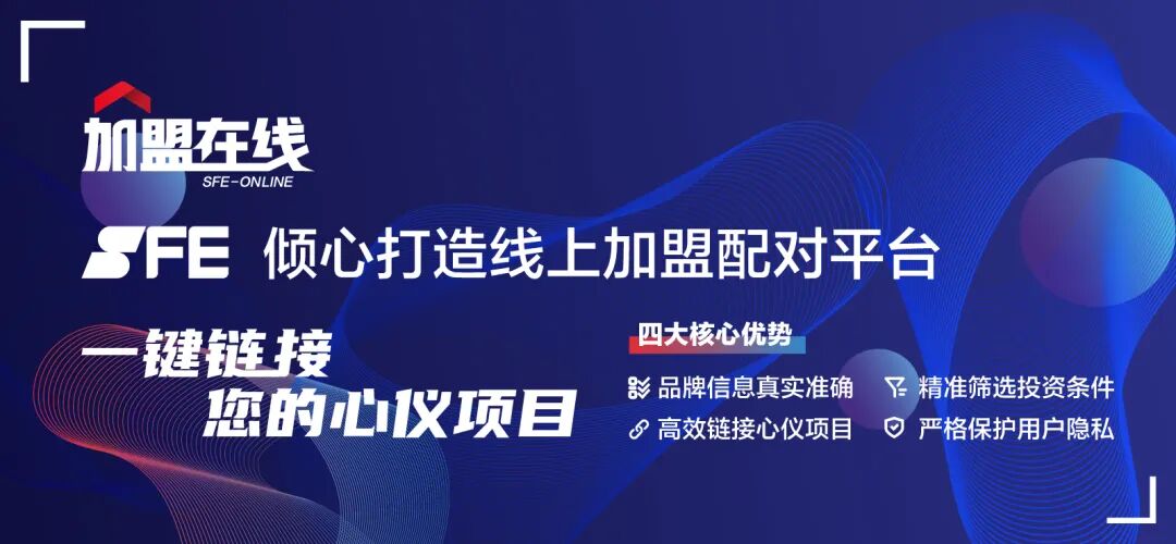 [温馨提示] 文章来源于SFE上海国际连锁加盟展览会,转载注明原文出处,此文观点与查生意无关,理性阅读,版权属于原作者若无意侵犯媒体或个人知识产权,请联系我们,本站将在第一时间删掉 ,查生意仅提供信息存储空间服务。