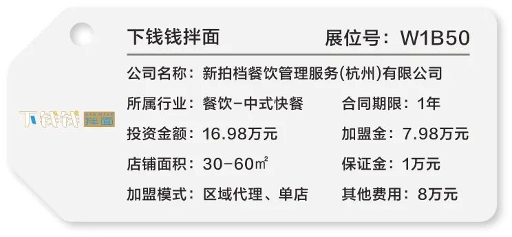 下钱钱拌面隶属于杭州新拍档企业管理有限公司,品牌定位为小而美的精致面馆。产品研发...