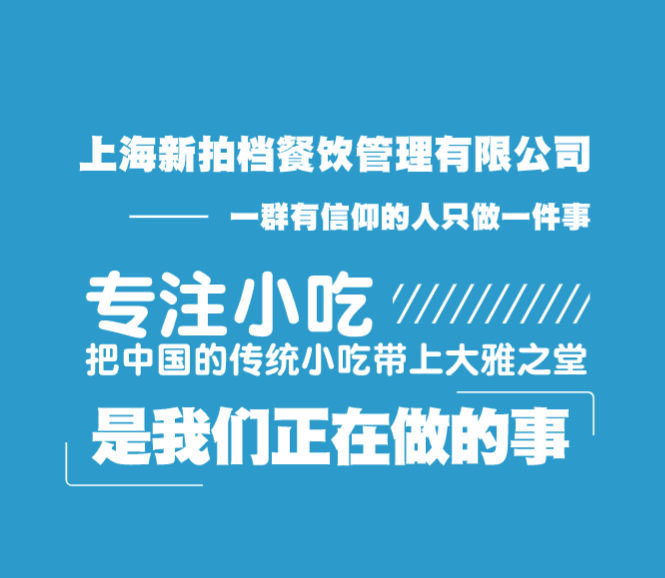杭州新拍档企业管理有限公司,是一家聚焦于中式餐饮连锁及零售的综合性企业,深耕市场二十年,目前已经形成了比较完善的集餐饮连锁、品牌建设、餐饮供应链、线上新零售为一体的服务体系。以多品牌及多维度策略为基调,通过创立不同风格的品牌,接触不同层面的消费者,实现企业的社会价值,目前全国门店已经累计超过5000家。