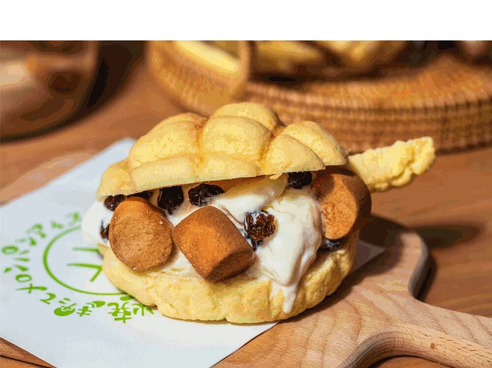 【世界第二好吃的现烤冰激凌菠萝包】起源于日本金泽市,在传统的港式菠萝包基础上,别出心裁的夹入了香甜冰激凌,香甜可口,风味独特,让年轻的女性消费者对其情有独钟。