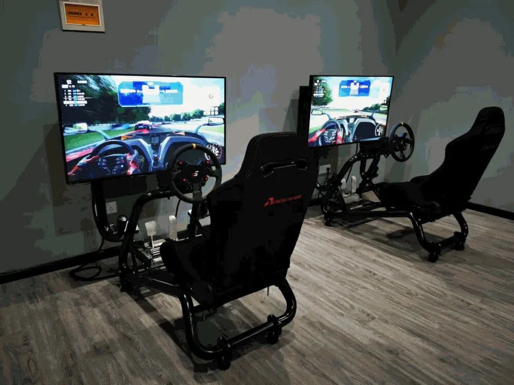 【分游竞速】模拟赛车实景,消费者可以自助扫码即登录游戏,随时享受沉浸式赛车驾驶体验。