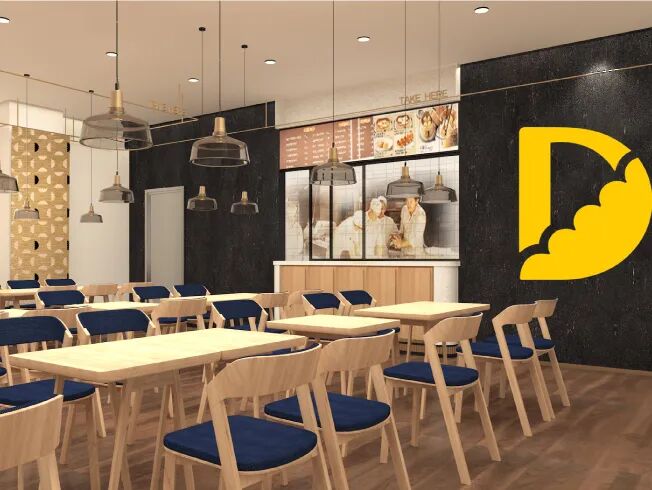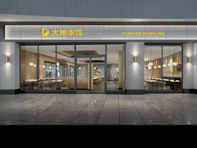 随着社会潮流的变迁,消费升级的趋势,越来越多的人们,开始注重就餐时的门店装修风格和空间体验感。大娘水饺带给大家的感受,也一步步从“饱享一餐”升级为“畅享美好“食光’”。明快的黄色、优雅的香槟金、大气的黑色,给人时尚简洁的初印象,让客人们在享受美味餐点的同时,增添了一份悠然自得,舒缓忙碌一天工作后的心情设计团队摈弃繁复冗杂的设计元素,适当保留关键设计的细节规整又不失舒适的客区分布,明显的扩充了空间边界感,灯光和视觉感觉,契合了新LOGO的V观感,整体风格既保留了熟悉的记忆点,又凸显了别致简约的空间感。未来的大娘水饺,将以全新的“商场”和“社区”餐厅形象,为大家带来更时尚、更舒适的用餐环境