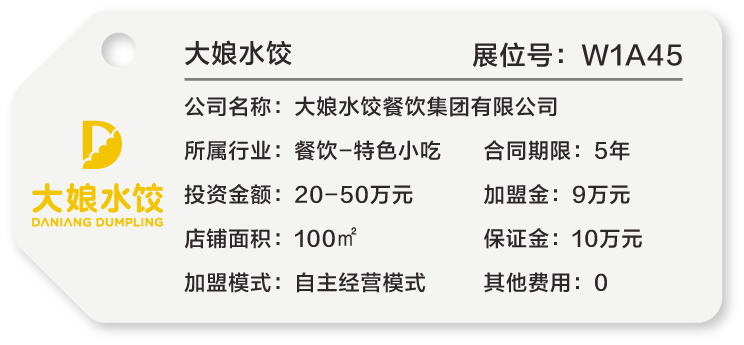 大娘水饺品牌创建于 1996 年 5 月的江苏常州,是以水饺、牛杂汤为主打产品,以商务套餐、特色面条、冷菜、汤品等系列产品为辅的中式快餐连锁著名品牌。近年来,大娘水饺已先后在苏、沪、京、皖、鲁、浙、粤、赣、甘、川等地区 100 多个城市开办了 440 多家连锁店。目前,公司总营业面积100000 余平方米,餐位 70000 多个,员工近万多人,年销售额近 19.5 亿元人民币,目前大娘水饺被列为中国快餐十大著名品牌企业和中国快餐十强企业。