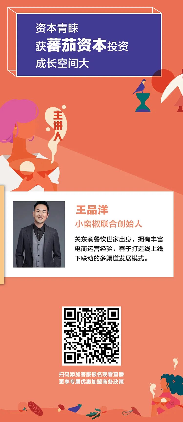 主讲人小蛮椒联合创始人王品洋,关东煮餐饮世家出身,拥有丰富电商运营经验,善于打造线上线下联动的多渠道发展模式。王总将为我们深度解析小蛮椒如何通过线上线下整合运行,打造出小投资、高回报的麻辣烫加盟模式。更有活动专享超值优惠商务加盟政策,详情请扫码关注: