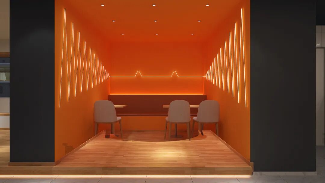 橙黄原木色调搭配质感灰,带来明亮爽朗。简约风设计,符合现代年轻人喜好取向。用一杯奶茶,拉近人与人之间的距离。