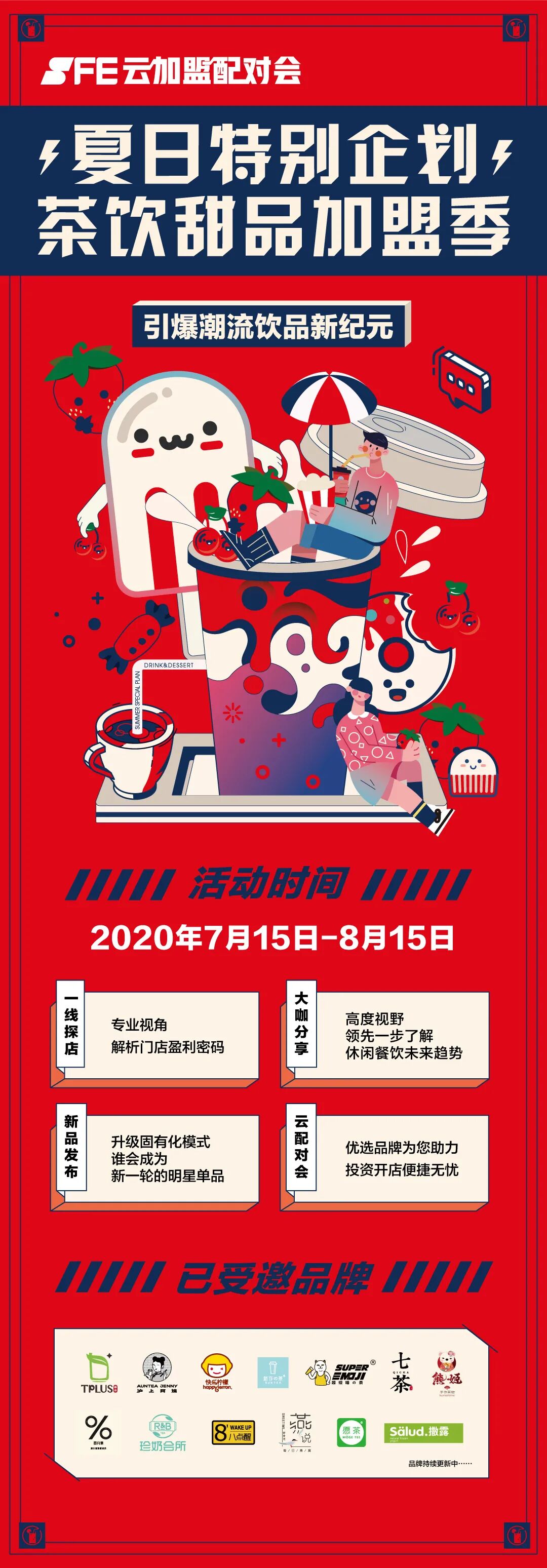 七月是茶饮加盟投资旺季,为此我们特别策划了SFE七月茶饮甜品加盟季,以专业视角,集一线探店、新品发布、大咖分享和云加盟配对等多重重磅内容为一体