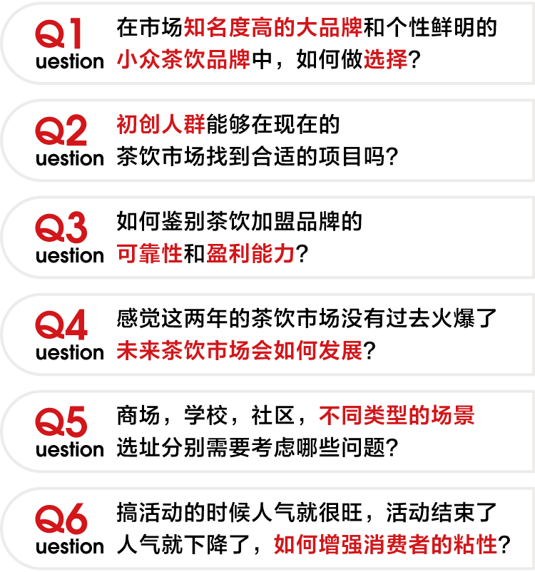 尽管我们对茶饮市场长期看好,但不可否认,在茶饮加盟的路上,确实有着许多的坑与雷。如何避开这些坑与雷呢?SFE七月茶饮甜品加盟季,我们筛选了茶饮加盟投资人尤为关注的一些问题,邀约了多位茶饮细分赛道标杆品牌大咖,以自身专业知识,分享避雷要诀,为您清扫茶饮加盟的障碍。