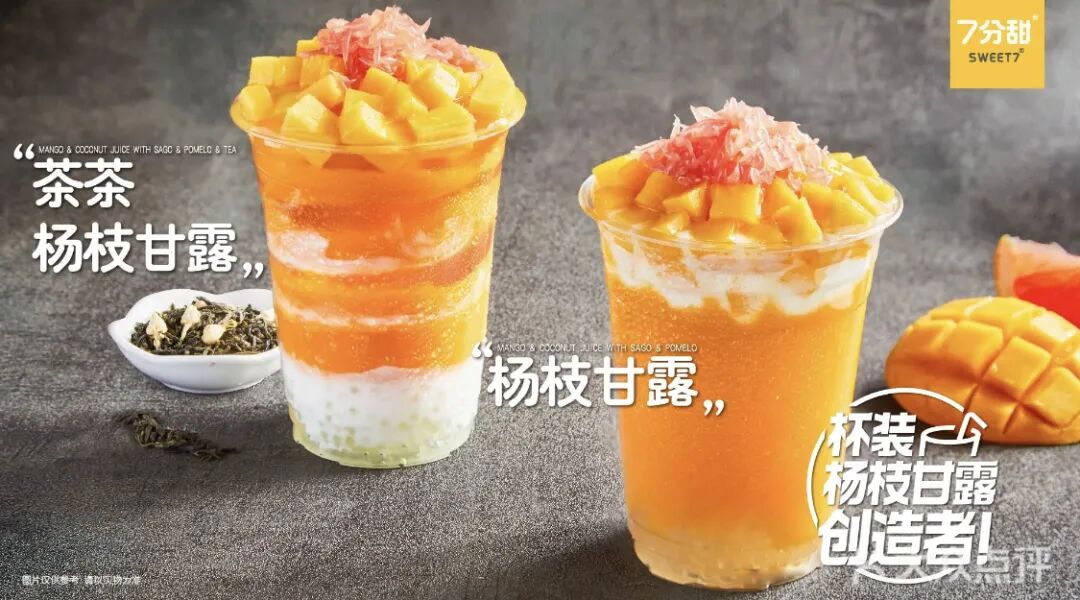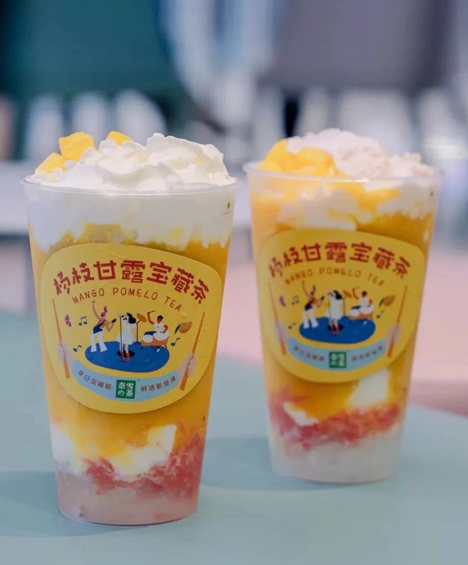 杨枝甘露开启了甜品杯装化的茶饮创新之路,杨枝甘露作为港式甜品,本身口感和颜值就深受消费者喜爱,杯装化的改造,消费场景限制被打破,在茶饮圈异军突起。目前,市场上绝大部分主流品牌的菜单上,都有杨枝甘露这一单品。