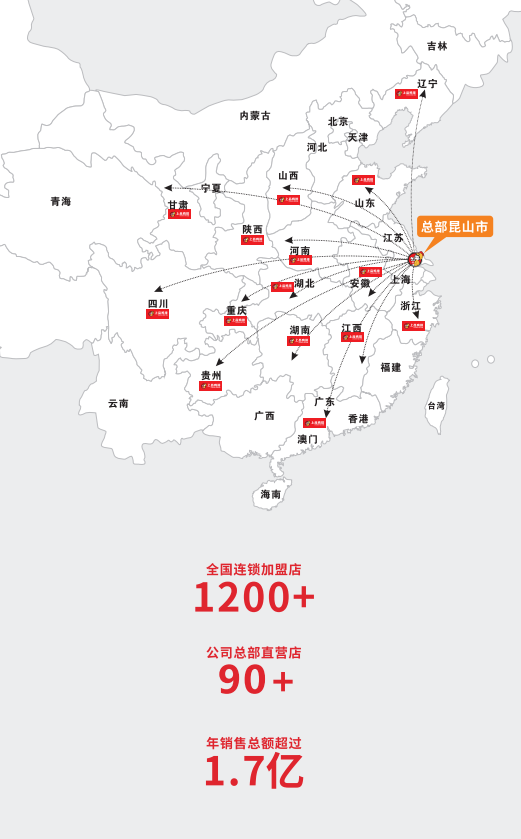 连锁门店已有1000多家,年销售额达到1.5亿元,形成以华东为核心、华南、华北、华中、西北和西南共同发展的良好势头。