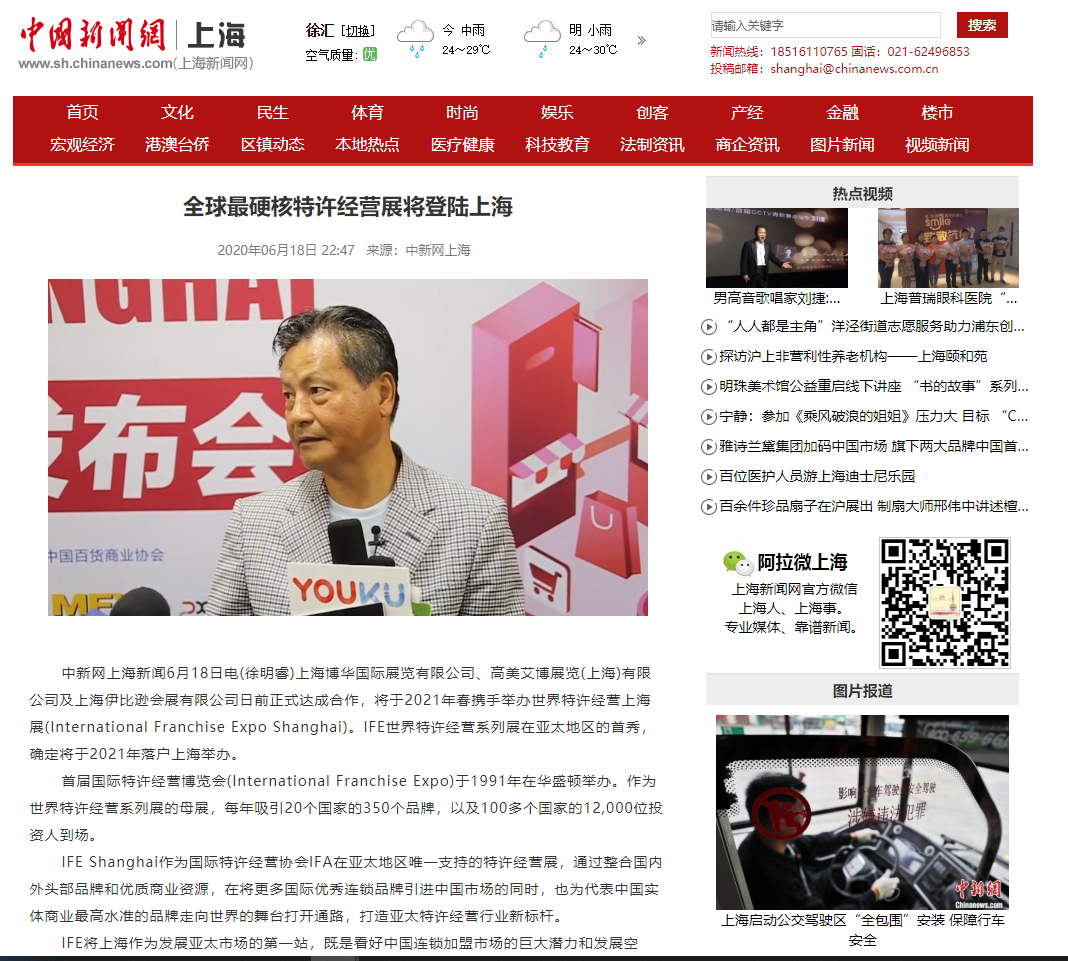 6月15日,世界特许经营上海展览会(IFE Shanghai)线上新闻发布会今日在上海举办。