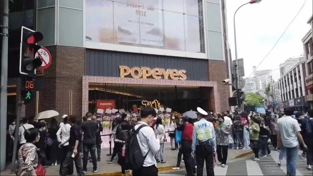 5月15日,来自美国的炸鸡品牌Popeyes位于上海市淮海中路566号的首家旗舰店正式营业,当天上午9点,离正式开业还有一个小时,现场队伍已经排至成都南路。其中第一批客人,凌晨4点就已经开始排队。
