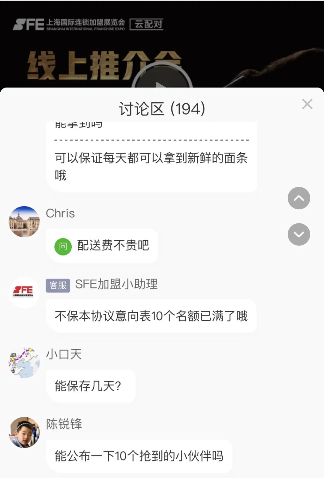 此次第一期SFE云加盟配对会的首战告捷,既是SFE上海连锁加盟展对当下市场的深刻洞悉,也是市场本身的内在需求。我们将在累计10期SFE加盟开店直播课和本次SFE云加盟配对会的基础上,持续打造市场继续的线上加盟配对平台,为优质连锁加盟品牌和投资人之间搭建专业度、公信力和性价比具备的优质线上匹配平台,助推市场复苏步伐,渡过当前疫情难关。
