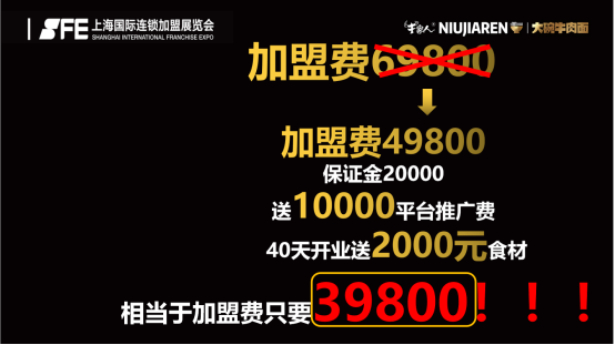 加盟费立减20000元,低至49800、保证金20000元,送平台推广费10000元,40天开业再送2000元食材,武汉门店4-6月免配送费。今天预付188定金锁定优惠30天。