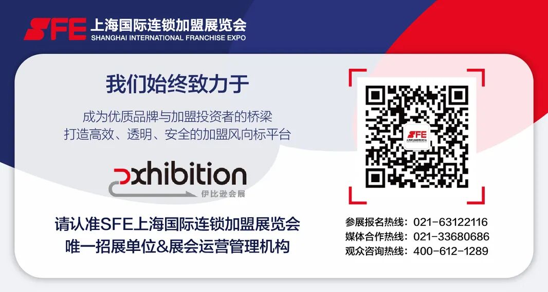 [温馨提示] 文章来源于SFE上海国际连锁加盟展览会,转载注明原文出处,此文观点与查生意无关,理性阅读,版权属于原作者若无意侵犯媒体或个人知识产权,请联系我们,本站将在第一时间删掉 ,查生意仅提供信息存储空间服务。
