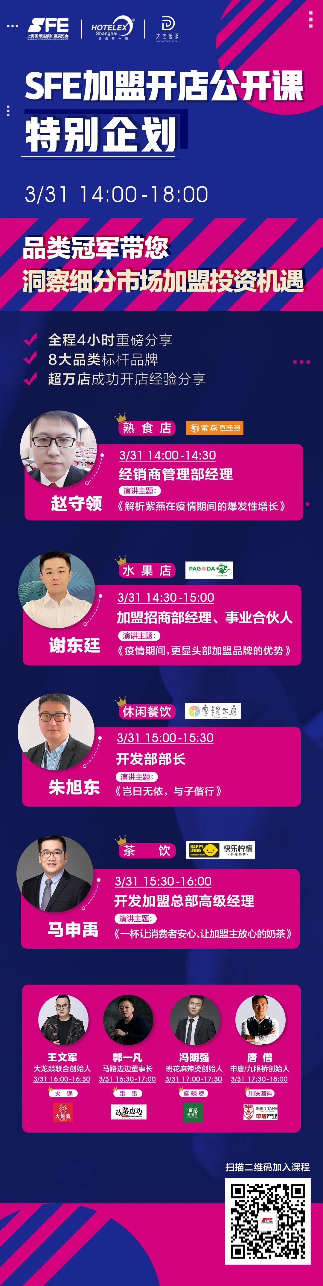 3月31日下午14:00-18:00,SFE加盟开店公开直播课将推出“品类冠军带...