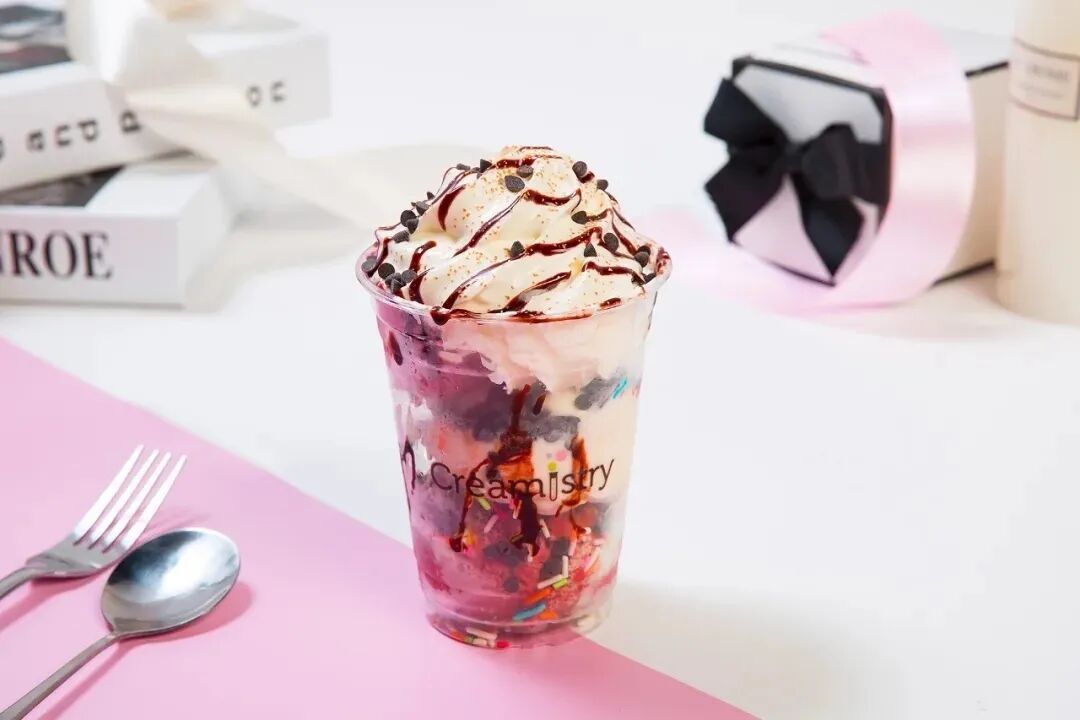 冰淇淋品牌Creamistry推出女神专属——女神杯,如果要用一种甜品来形容心中的女神,那一定非红丝绒莫属,绚丽夺目如秋日红枫的颜色,雍容高贵如天鹅绒般的质感,撒上些许比利时进口巧克力豆,华丽优雅却也不失活泼俏皮。