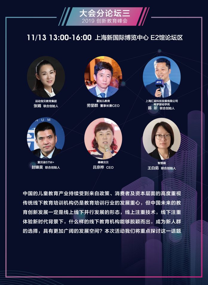 国内儿童教育产业持续受到来自政策、消费者及资本层面的高度重视。传统线下教育培训机构仍是教育培训行业的发展重心。但国内未来的教育创新发展一定是线上线下并行发展的形态,线上注重技术,线下注重体验。新时代背景下,什么样的线下教育机构能够脱颖而出,成为新人群的选择,具有更加广阔的发展空间?是本次论坛重点探讨的话题。