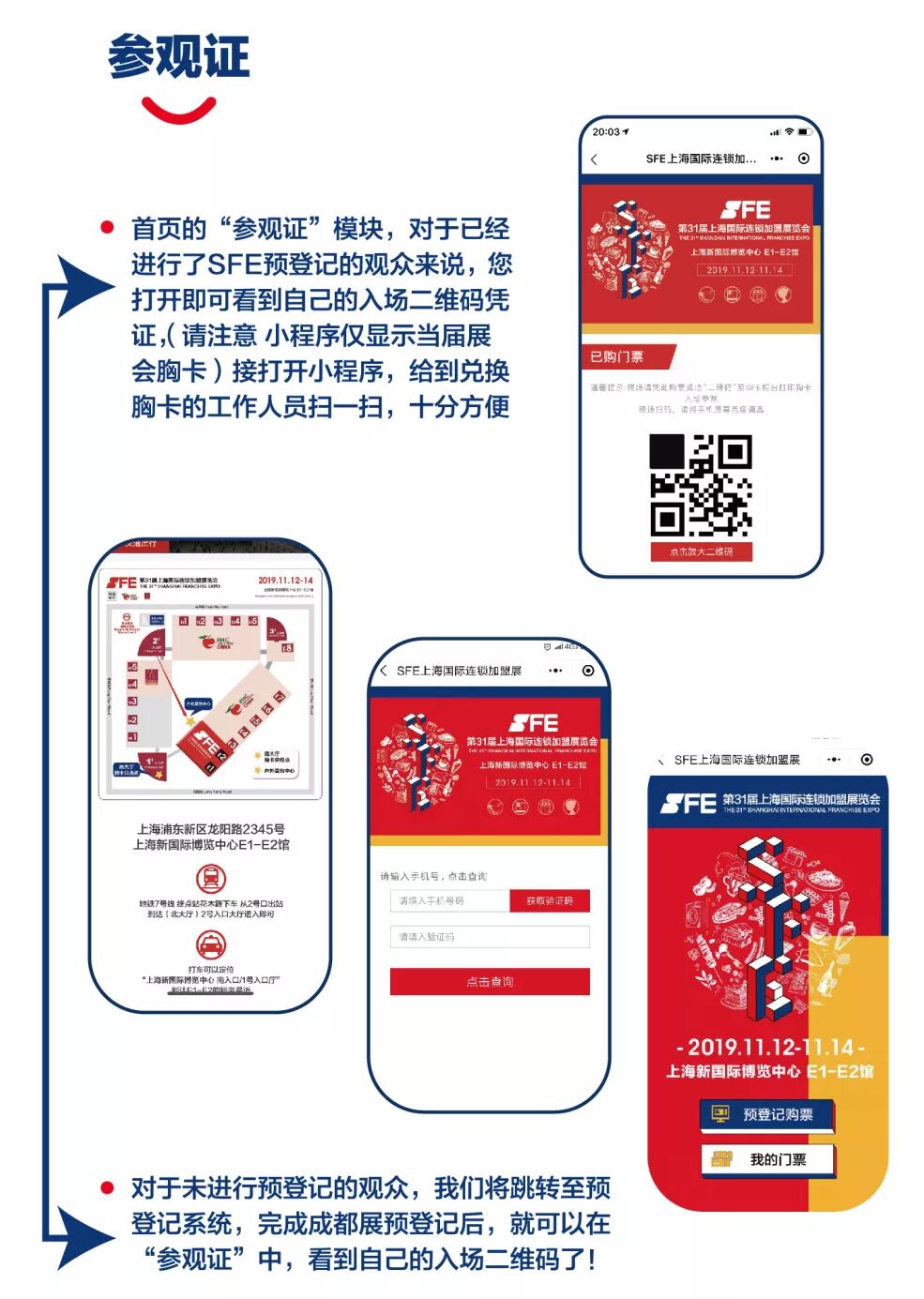 长按识别或扫一扫SFE观展小程序码,授权进入“点击购票” 即可注册获取入场凭证。每天签到更有精美好礼等您兑换!