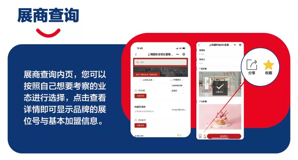 往下滑动,有分享与收藏按钮,方便您把想要了解的展商信息,分享给更多的朋友,同时也方便您在“个人中心”——“我的收藏” 中进行查看。