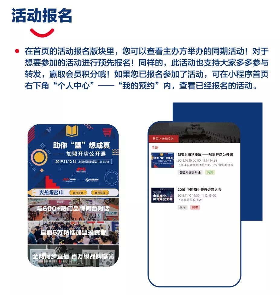活动报名中,您可以提前在小程序预约所有当届展会的同期活动!同时分享与转发还可以赢取积分兑换主办方准备的精美礼品哦!