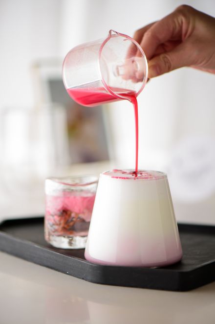 四月的Fuj(i 樱花)/林上的Fuj(i 抹茶) 选定每季特定天然食材,结合新鲜牛奶 以富士山熔岩爆发的形式创意呈现渐变层次。