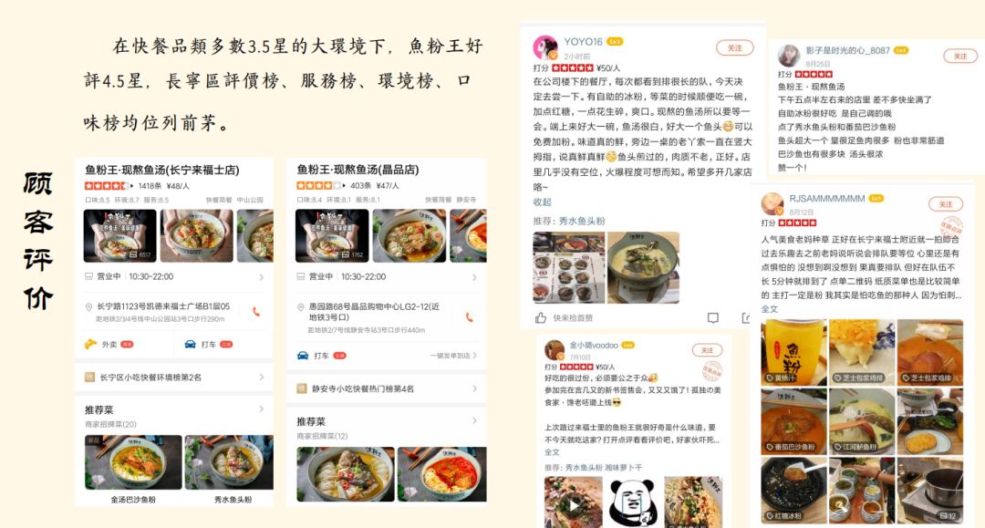 在快餐品类多数3.5星的大环境下,鱼粉王好评4.5星,长宁区评价榜、服务榜、环境榜、口味榜均位列前茅。