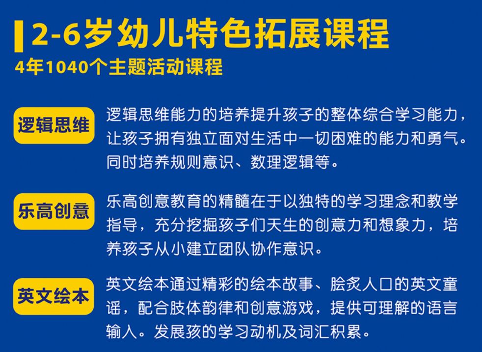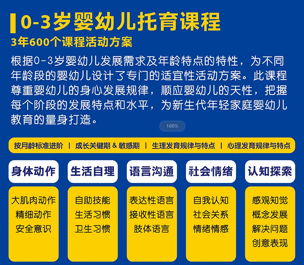 资深早期教育专家精心研发符合中国0-3岁婴幼儿身心 发展规律托育课程体系,实现家庭教育与幼儿园教育无缝对接。