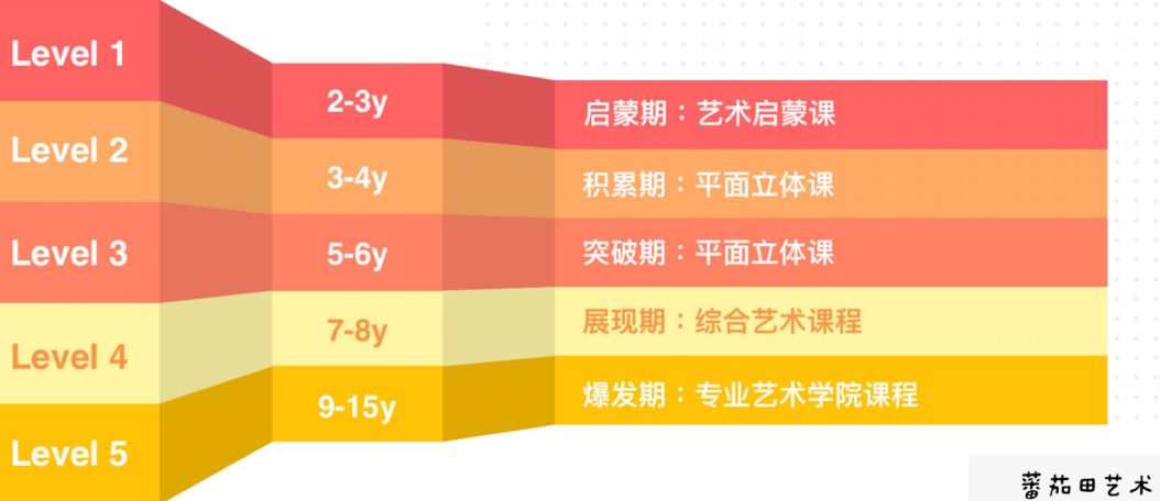 蕃茄田艺术通过11年5学阶的完整创造力思维系统课程,适龄适性地满足不同认知发展阶段孩子的学习需求。课程通过三大主题、五大教学步骤的引导,超过50种 的多元媒材探索,培养孩子未来所需的六大能力-”转译、多向思维、多元智能、艺术视野、裂变型成长、创新决策。〃蕃茄田艺术不断强调,从孩子的特质出发,让孩子在艺术的氛围中发现自己,通过创造力思维系统为孩子赋能,让孩子能”从想法到实践、从掌握到调度、从自我到超越”,掌握”面对未知并超越未知”的能力。