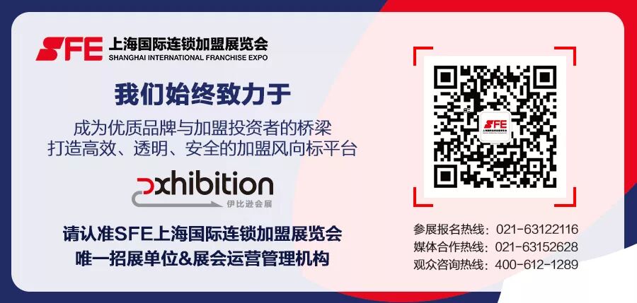 [温馨提示] 文章来源于SFE上海国际连锁加盟展览会,转载注明原文出处,此文观点与查生意无关,理性阅读,版权属于原作者若无意侵犯媒体或个人知识产权,请联系我们,本站将在第一时间删掉 ,查生意仅提供信息存储空间服务。