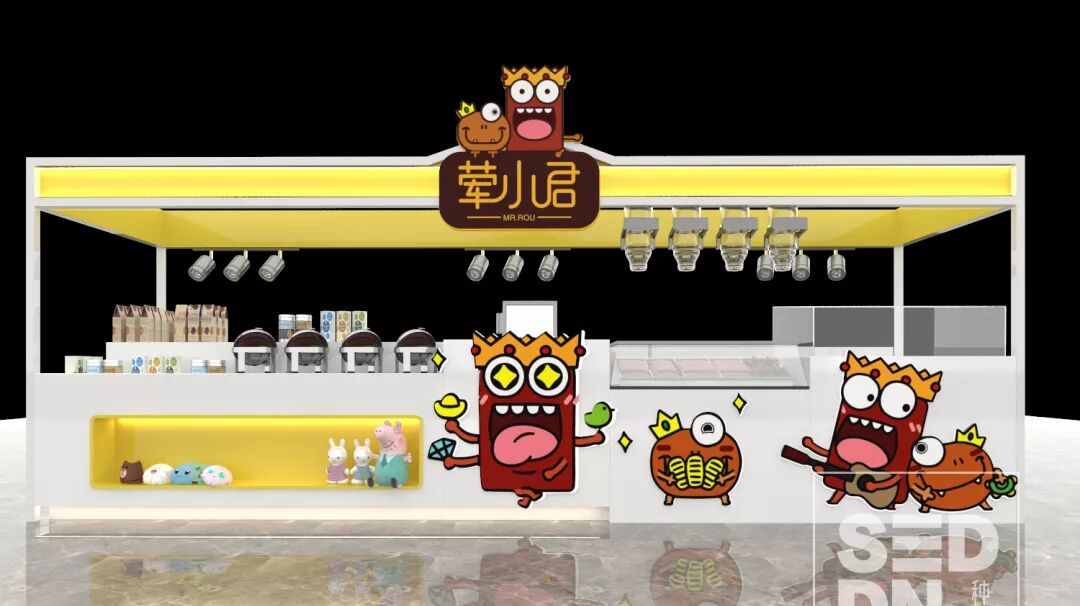 荤小君Mr.Rou”连锁门店以“顾客为出发点”以“商业为目标”打造时尚的门店形象,植入活泼的品牌符号,给门店赋予灵魂。