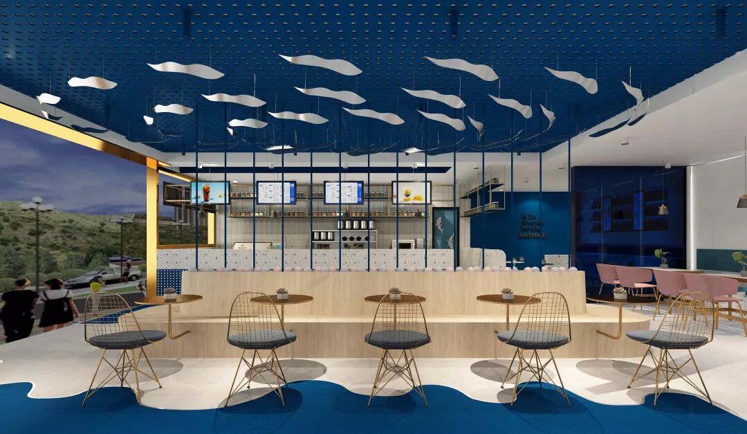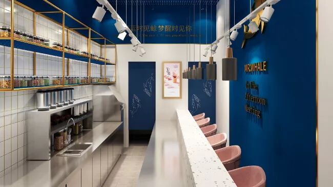 鲸港湾结合海洋元素将“极简” “轻奢”等美学,融入空间设计和品牌调性,打造清新而新锐的视觉体验