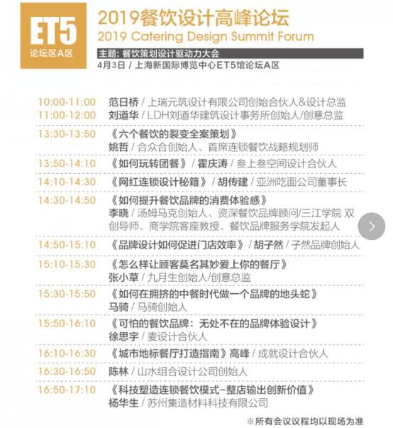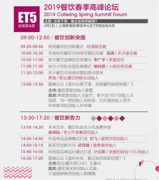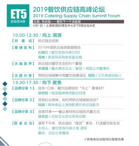 在即将于上海新国际博览中心开展的上海国际及餐酒店饮业博览会同期有六场预示2019餐饮行业走向的高峰论坛。