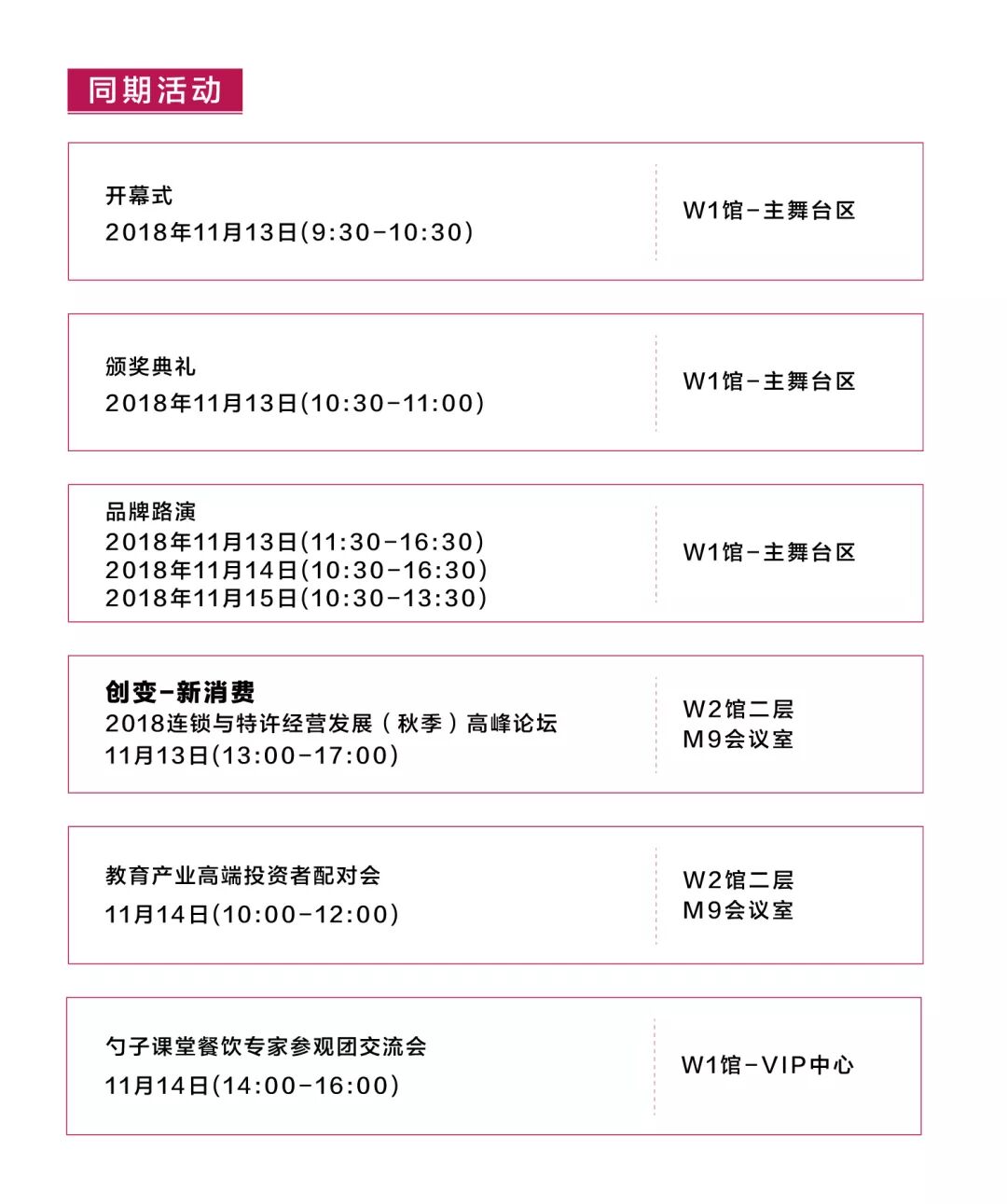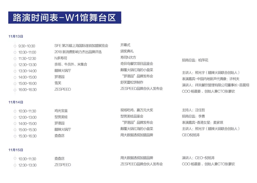 本届展会路演活动时间表为大家奉上,为了不错过品牌的精彩活动,记得点开查看高清大图保存至手机,合理安排您的观展时间噢!