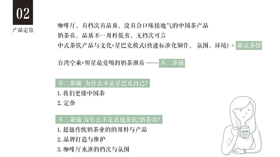 不二茶铺是上海莎福瑞餐饮管理有限公司旗下品牌。品牌来自宝岛台湾,产品线涵盖茶饮、千层蛋糕、欧式面包。茶饮产品坚持采用台湾“冠军茶庄”出品的高山乌龙茶,使用自行研发的萃茶机,现点现萃,每一杯都还原茶叶“本来的味道”。门店欧式面包团队由台湾“世界金厨冠军”许燕斌师傅亲自监制,采用法国进口T55面粉、无水奶油、当季农作物,为您呈现出能吃出“幸福味道”的软欧包。