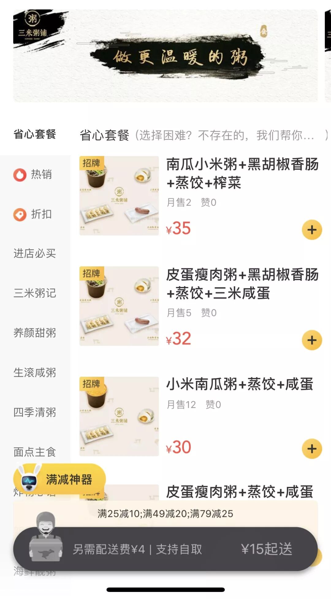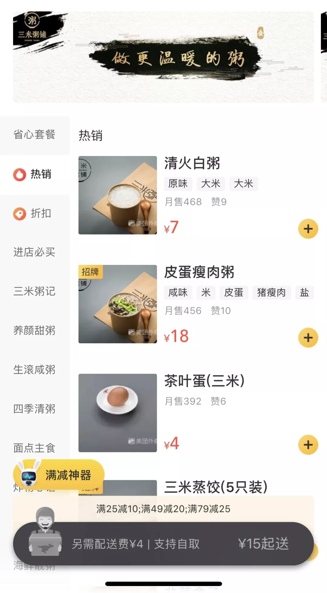 图片源自:美团外卖 三米粥铺 线上门店