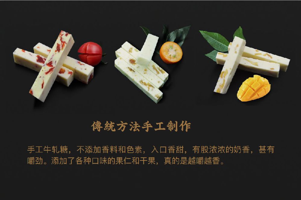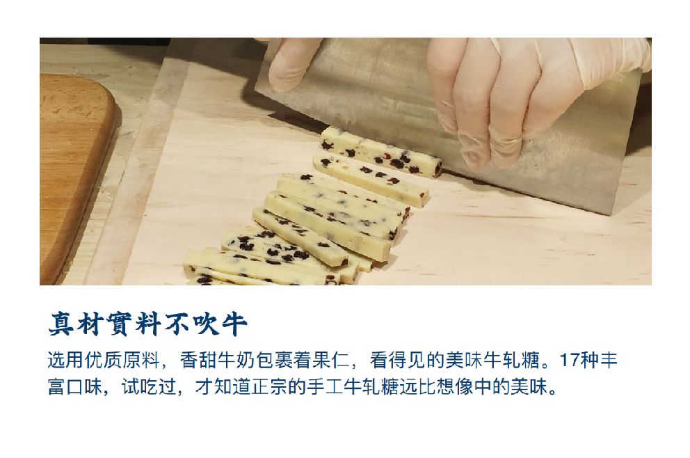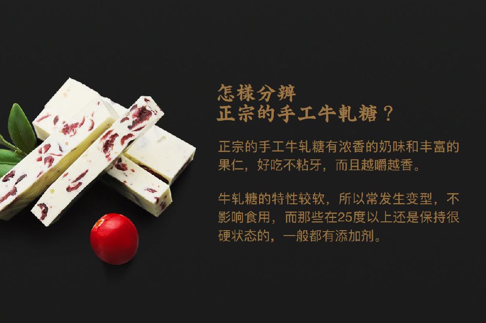 荷喜⼿⼯⽜轧糖,原创美⻝品牌,纯正⼿⼯,经典味道。传承中华传统美⻝,精⼼烘焙,⼿⼯制作,保留⽜轧糖的浓郁奶⾹以及实实在在的果仁,获得市场的⼀致好评。