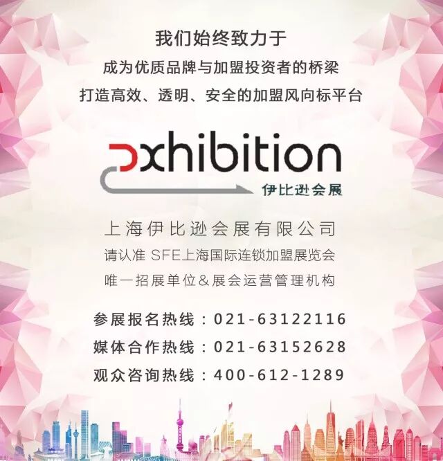[温馨提示] 文章来源于SFE上海国际连锁加盟展览会,转载注明原文出处,此文观点与查生意无关,理性阅读,版权属于原作者若无意侵犯媒体或个人知识产权,请联系我们,本站将在第一时间删掉 ,查生意仅提供信息存储空间服务。