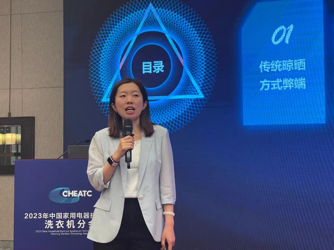 在企业针对干衣机所做的各项技术创新中,海尔最新首创的双擎热泵干衣技术堪称典范。在洗衣机分会上,海尔集团干衣机企划总监张宁就对这项技术的应用研究进行了详细介绍。她指出,传统晾晒方式存在空气污染物、灰尘以及花粉等污染弊端,同时受天气条件及建筑要求限制,以及养宠用户数量迅速增加带来的除毛、除菌、除螨需求的提升,中国家庭专业烘干的需求也大大增加。烘干速度快、更呵护衣服、烘干效果更好、更健康节能的独立干衣机则是未来的主要产品趋势。