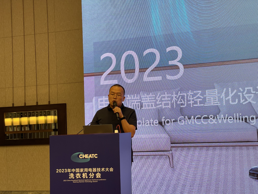 在洗衣机专业技术分会上,在关键零部件技术领域,广东威灵电机制造有限公司基础技术研究室经理助理钱成以《电机端盖结构轻量化设计及其对波轮洗衣机噪声的影响分析》为题进行了演讲。他指出,通过试验和仿真结合的方式,识别出端盖-转子耦合模态是影响波轮洗衣机噪声的关键电机模态。端盖结构轻量化设计不能仅仅简单考虑结构强度,还应该确保电机耦合模态频率不发生大幅降低。
