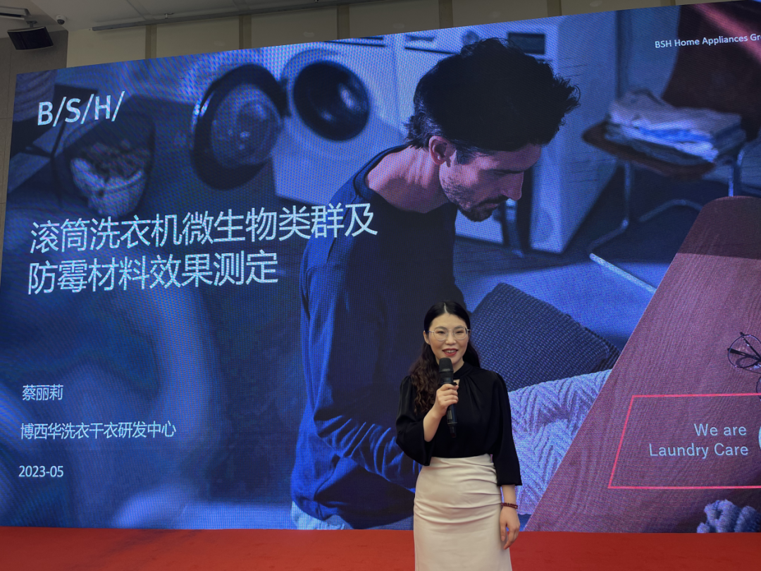 《电器》记者注意到,针对前几年大热的“健康除菌”技术,企业研究开始向更深层次进行挖掘。博西华家用电器(江苏)有限公司健康功能技术专家蔡丽莉就滚筒洗衣机内部环境的主要微生物类群,以及加入抗菌防霉物质以减轻霉斑产生可行性分析类群这两个研究方向的测定实验进行了分享。其中,通过对滚筒洗衣机内部微生物类群的分析鉴定,他们发现并分析得到国内不同地区滚筒洗衣机内部产生的主要霉菌类群。虽然采集样品所处地理位置不同,但霉菌类群并无明显差异,这为国内滚筒洗衣机防霉材料的选择提供了共性的技术要求。此外,在对发现的主要优势霉菌进行了防霉材料的短效及长效的防霉效果测定后,他们发现,目前的防霉材料未来还需要在长效的防霉效果设计上进一步优化材料配方设计。