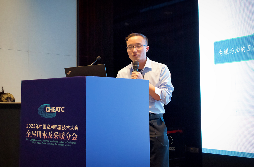 推动热泵更节能、可靠运行,也是空气能产业链企业的重要课题。广东美芝制冷设备有限公司热泵产品线负责人胡培海分享了“欧洲热泵采暖压缩机技术研究及应用”。据他介绍,热泵专用压缩机开发要满足强低温制热、宽运行范围、高能效、低噪声、长寿命等的要求。GMCC研发的热泵用变频变容喷气全能耦合压缩机,通过“高效变频+创新变容+喷气升级”三重技术的耦合,不仅制热能力可提升45%~85%,能效也可以提升4%~10%。另外,R290热泵压缩机设计的关键点在于选择合适的冷冻油。GMCC针对R290开发了专用的合成油XS-601C1,具有更低的溶解性和更稳定的工作粘度,能同时满足热泵压缩机在高负荷运行时的高粘度要求和低温运行时的流动性要求;同时,较低的溶解度还可以降低压缩机内R290制冷剂的含量,从而有效增加系统的循环制冷剂量。