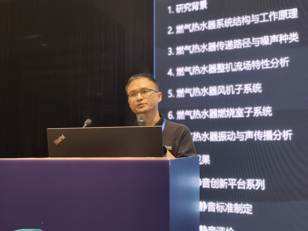 噪声是影响热水器使用体验的一个关键因素。会上,美的集团厨房和热水事业部研究院流体固体实验室主任汪耀东带来了“静音燃气热水器研究及产业化”的演讲。他表示,热水器的使用场景多为深夜和清晨,噪声会影响人们的正常休息。同时,近年来的燃气热水器消费者差评中,与噪声相关的差评占总数的40%。美的遵循“源-传播路径-接收者”的路线对燃气热水器进行噪声分析,研发出仿生双鳃消音舱。该技术通过内鳃32个扰流孔,散开气流,减少噪声,再经过外鳃迷宫式反射降噪,进一步消耗噪声,噪声水平再上一个台阶。值得注意的是,基于该技术的1级静音产品也已经面世,且市场反响符合预期。