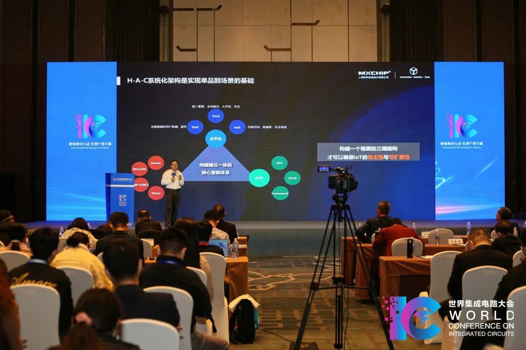 2022年11月16~18日,由工业和信息化部、安徽省人民政府主办的2022世界集成电路大会在安徽省合肥市举行。大会期间,在由中国家用电器协会和中国半导体协会承办、安徽省信息与家电协会协办的以“加强协同互动,实现产业共赢”为主题的智能家电与芯片应用论坛上,家电企业供应链和技术管理人员、半导体企业代表、业内专家齐聚一堂。上海庆科信息技术有限公司CEO王永虹受邀出席活动,并以《家电+AIoT,从设备智能到场景智能的深化与变革》为题发表演讲。