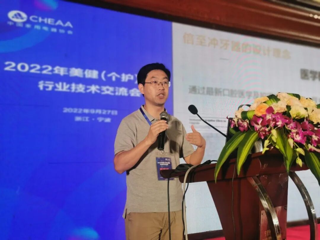 作为电动牙刷的必要补充清洁工具,电动冲牙器的潜在需求正在持续规模性释放,对应的产品技术也在不断发展和创新。会上,来自上海飞象健康科技有限公司的研发经理卢劲松从产品设计角度,介绍了电动冲牙器的4大系统,并描述了倍至冲牙器品牌的功能美学设计思路,为行业和相关企业的产品设计带来了一些有益借鉴和思考。