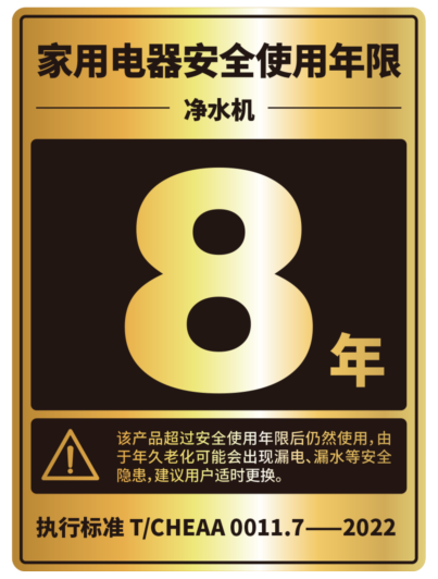 因此,明确净水产品安全使用年限很有必要。在此背景下,今年4月18日由中国家用电器协会制定的《家用电器安全使用年限 第7部分:家用净水机》正式施行。该标准对家用净水机安全使用年限、净水机正常使用条件、安全使用年限提醒信息等进行了规范。标准中提出,净水机产品安全使用年限为8年。其中,安全使用年限应从净水机的购买日期计起,并连续计算。