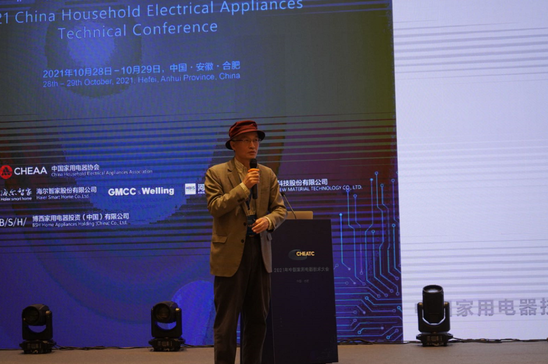 美的集团机电事业群机电研究院副院长郑立宇代表本届大会的协办单位致辞。他表示,后疫情时代,人们对美好生活的向往更加强烈,对创新产品的要求不断升级。在第四次工业革命的大背景下,从世界到中国,科技竞争已然白热化。同时,随着国家“双碳”目标的发布,绿色发展的大潮已势不可挡。碳减排是中国家电产业面临又一重大挑战。在中国家用电器协会正确、前瞻的技术路线指引下,企业、院校及科研单位积极探讨技术发展的趋势,交流技术研究的成果,不断推动中国乃至全球家电行业的升级发展。本次家电技术大会以“智慧、健康、绿色、材料”为主题,指向创新驱动和双碳目标,引导行业在新的竞争形势下,就智能化、数字化、健康与绿色低碳等方向发起技术挑战,力争科技领先,赢取新阶段的领先发展机会。